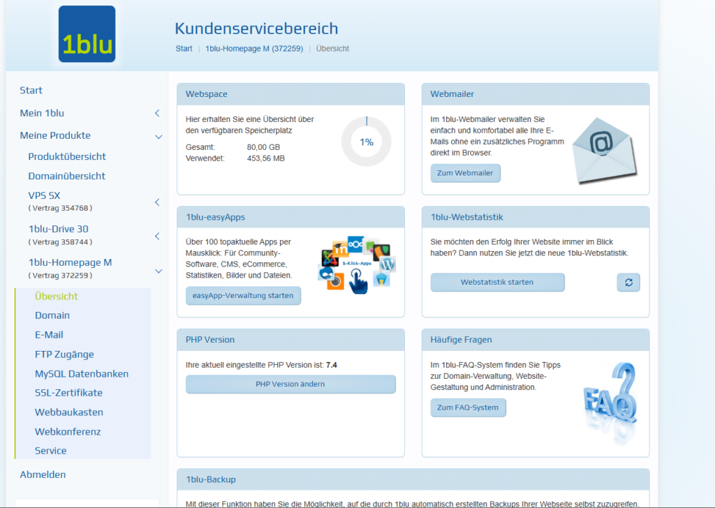 Die schnelle und doch so einfache Lösung war das 1blu.de Kunden Backend.