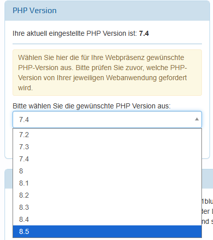 Auch als ich über mein Winscp/Putty Terminalt versuchte die PHP Version zu ändern, verschwand die Fehlermeldung nicht.